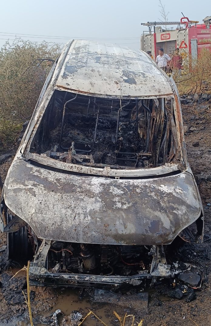 धार जिले के सिंघाना// मनावर के समीप सिंघाना से निसरपुर की ओर जा रही सफेद कार अनियंत्रित होकर, आग लग गई।जिसमें एक चालक की वाहन के अंदर जलने से मौके पर ही मौत हो गई है।