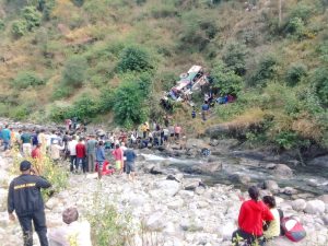 उत्तराखंडमधील अल्मोडा येथे सोमवारी प्रवाशांनी भरलेली बस रस्त्यावरून घसरली आणि 200 मीटर खोल दरीत कोसळली. अपघाताच्या वेळी बसमध्ये प्रवाशांचा भार जास्त असल्याचे सांगण्यात येत आहे. प्रत्यक्षदर्शींनी दिलेल्या माहितीनुसार बसचे नियंत्रण सुटले होते. या बसमध्ये जवळपास 40 जण प्रवास करत होते. बस कुपेल गावाजवळ आली असता चालकाचे नियंत्रण सुटले आणि बसला अपघात झाला.