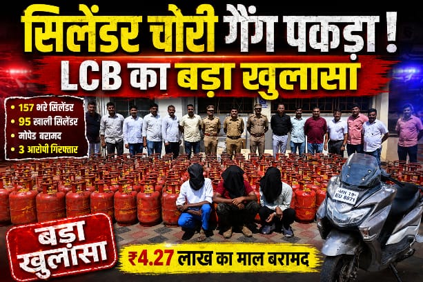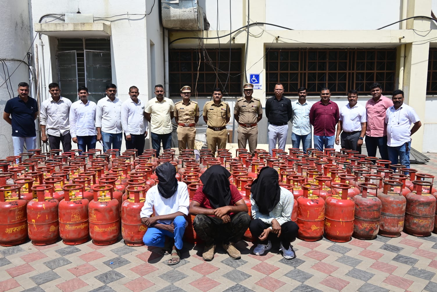 या कारवाईत पोलिसांनी शेख बिलाल शेख नदीर (रा. करंजा, ता. एरंडोल), वसीम खान शब्बीर खान (रा. तांबापुरा, जळगाव) आणि चेतन सुरेश काले (रा. भुसावळ) यांना अटक केली. आरोपींकडून ६२ भरलेले व ९५ रिकामे गॅस सिलेंडर तसेच चोरीसाठी वापरण्यात आलेली मालवाहू गाडी जप्त करण्यात आली.