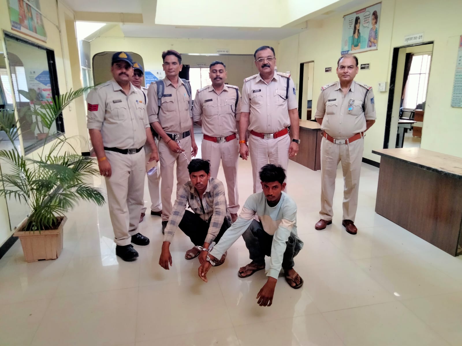 जांच के दौरान मुखबिर से मिली सूचना के आधार पर पुलिस ने ध्यानसिंह उर्फ नहार सिंह भील (23) और इंदर सिंह उर्फ नहार सिंह भील (20), दोनों निवासी हाथी कुण्डया फाल्या, थाना नेपानगर को ग्राम असीरगढ़ से गिरफ्तार किया। पूछताछ में दोनों ने चोरी की वारदात कबूल कर ली।