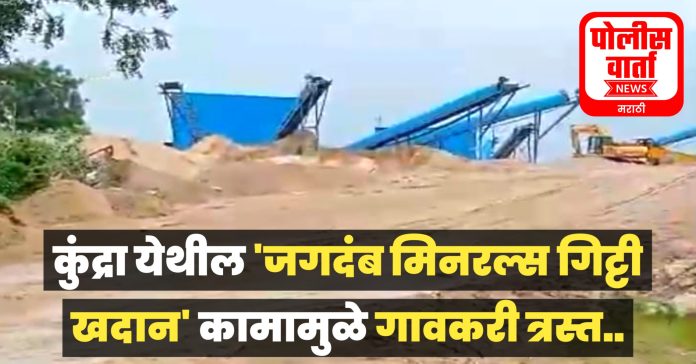 पोलीस वार्ता, यवतमाळ : वणी तालुक्यातील कुंद्रा गावा लगत असलेल्या ‘जगदंब मिनरल्स गिट्टी खदान’मध्ये बरेच दिवसापासून काम चालू आहे. या खदान कामामुळे परिसरातील शेतकऱ्यांना आणि गावकऱ्यांना अनेक समस्यांना सामोरे जावे लागत आहे. शेतकऱ्यांच्या शेतामध्ये माईनिंगमुळे दगड जात असल्यामुळे पिकांचे अतोनात नुकसान होत आहे व ब्लास्टोंनमुळे गावातील घरांना हादरा बसून धोका निर्माण होत आहे. मायनिंगमुळे उडणाऱ्या धुळीतून गावकऱ्यांना श्वसनासंबंधी त्रास सहन करावा लागत आहे. हवेतील प्रदूषण आणि माईन्सकामामुळे झालेल्या खड्ड्यात पाणी साचून शेतकऱ्यांना शेतात जाणे येणे कठीण झाले आहे. या सर्व कारणांमुळे शेती पिकांचे नुकसान होत असल्याचे शेतकऱ्यांचा रोष दिसून येत आहे.