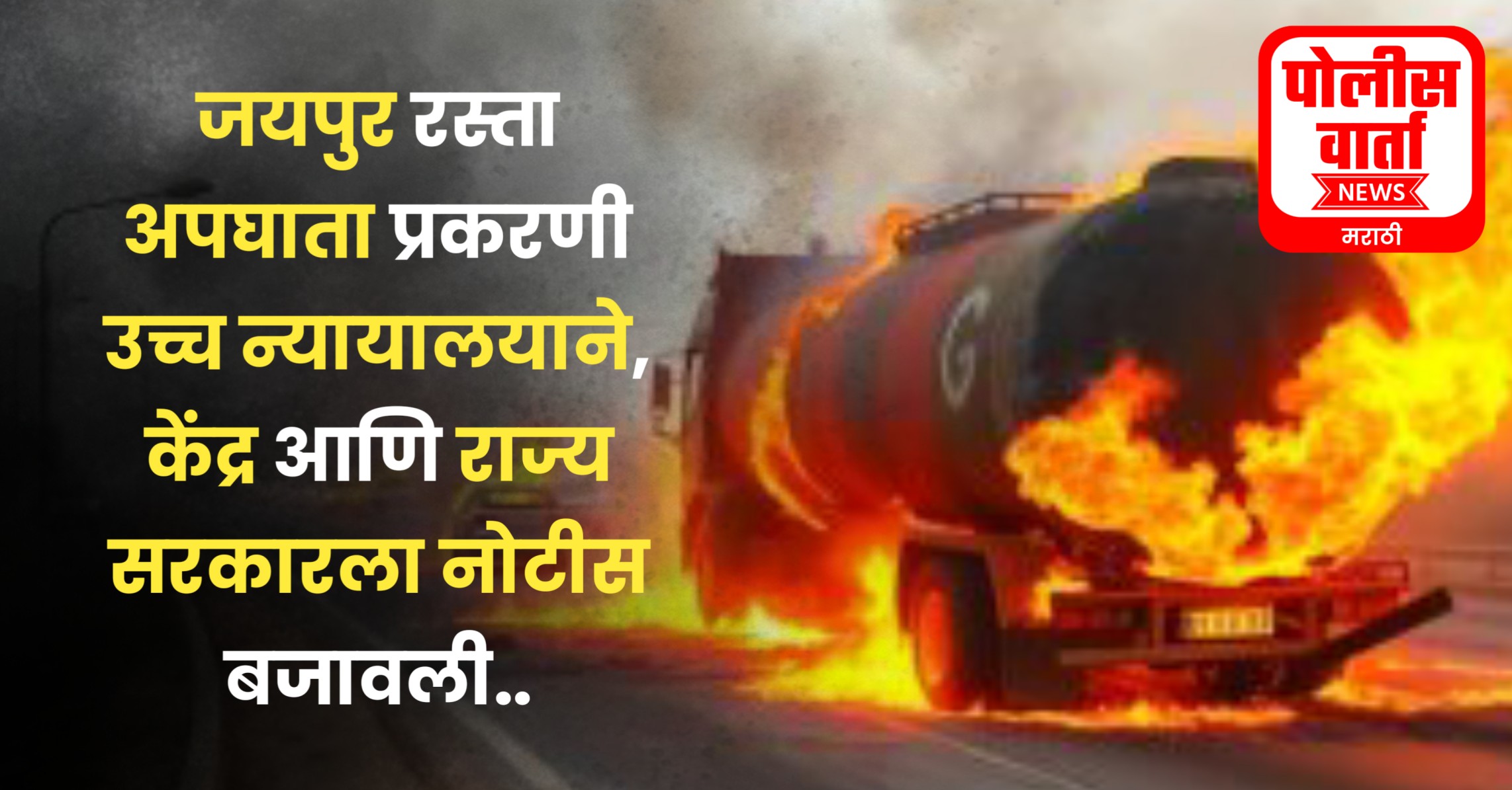 पोलीस वार्ता, जयपूर | जयपूरमध्ये शनिवारी दि.21 डिसेंबर 2024 रोजी घडलेल्या गॅस टँकर दुर्घटनेतील मृतांची संख्या 14 वर पोहोचली आहे. या घटनेची स्वत:हून दखल घेत राजस्थान उच्च न्यायालयाने केंद्र आणि राज्य सरकारांना नोटीस बजावली आहे. नोटीस जारी करून न्यायमूर्ती अनुप कुमार धांड यांच्या खंडपीठाने या प्रकरणाची पुढील सुनावणी 10 जानेवारी रोजी ठेवली आहे.