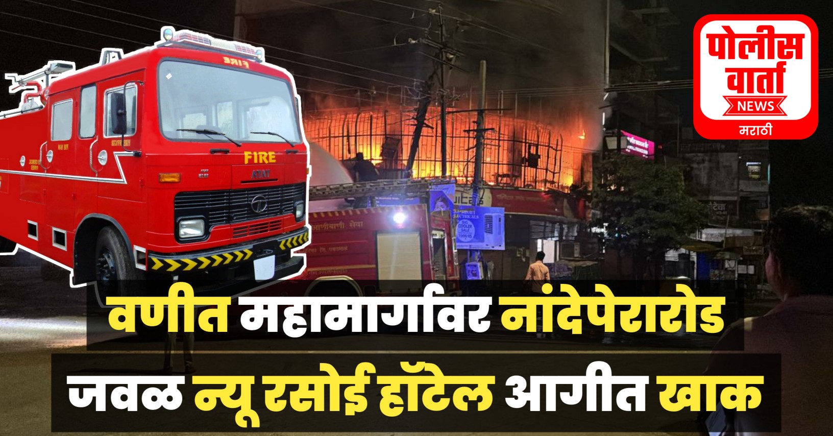 मिळालेली माहिती अशी की, नेहमीप्रमाणे बुधवारी 26 मार्च रोजी न्यू रसोई हॉटेल रात्री बंद करून सर्व कर्मचारी घरी गेले, मात्र मध्यरात्री 1 वाजेच्या सुमारास अचानक इमारतीतून धूर निघू लागला. मार्गावरून जात असताना रेस्टॉरंटमधून निघणारा धूर काही लोकांच्या लक्षात आला. त्यांनी तत्काळ अग्निशमन दल आणि हॉटेल मालकाला याची माहिती दिली. आगीची माहिती मिळताच वणी अग्निशमन पथक तातडीने घटनास्थळी दाखल झाले. या घटनेने परिसरात खळबळ निर्माण होऊन बघ्यांची मोठी गर्दी झाली होती. आगीच्या तीव्रतेमुळे इमारतीत मोठा आवाज होऊन काचा फुटल्या, पोलिसांनी घटनास्थळी पोहचून परिस्थिती नियंत्रणात आणण्याचा प्रयत्न केला. आग इतकी भीषण होती की आग विझवण्यासाठी दोन अग्निशमन वाहने तैनात करण्यात आली होती.