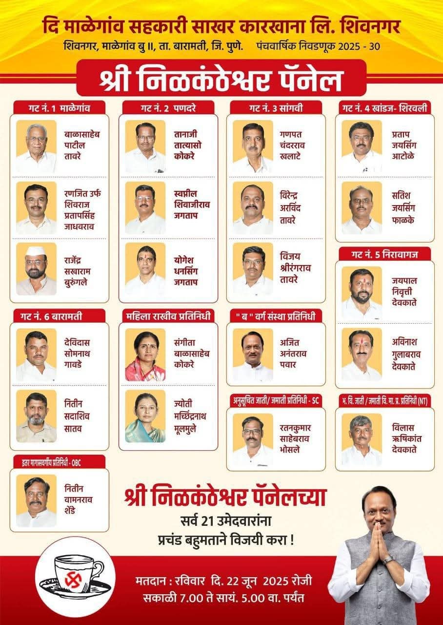 तब्बल गेल्या 40 वर्षांनंतर उपमुख्यमंत्री अजित पवार यांनी या सहकारी साखर कारखान्याच्या निवडणुकीत भाग घेतला आहे. या निवडणुकीत ते थेट संचालकपदासाठी उमेदवारी करत आहेत. त्यांच्या नेतृत्वात ‘श्री नीलकंठेश्वर पॅनेल’ ने 21 उमेदवार रिंगणात उतरवले आहेत.