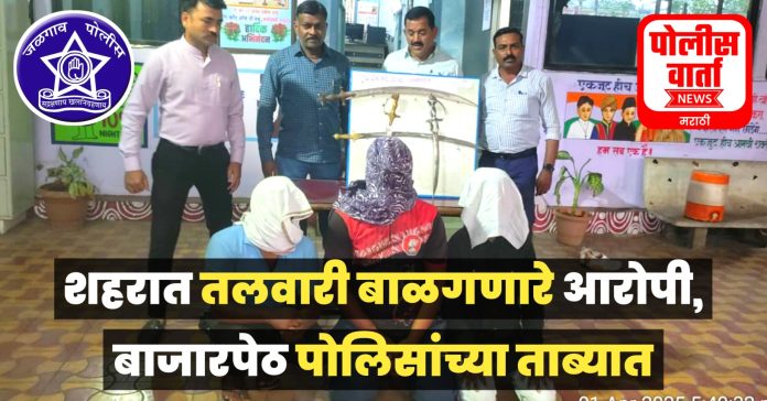 पोलीस वार्ता, भुसावळ : शहरातील बाजारपेठ पोलीस ठाण्याच्या हद्दीत तीन इसम तलवारी घेवून फिरत असल्याची माहिती स्थानिक गुन्हे शाखा जळगांव पथकातील गोपाल गव्हाळे, सचिन पोळ, कलमलकर बागुल, गजानन देशमुख तसेच संघपाल तायडे यांना मिळताच त्यांनी तात्काळ जामनेर रोडवरील इंदिरानगर, कालिका माता मंदिराजवळ पोहचून सापळा रचला आणि गोविंदा झाडे यांच्या घराच्या बाजूला असलेल्या बोळजवळ दि.1 एप्रिल रोजी, दु.1 वाजता केलेल्या शोध मोहिमेत तीन संशितांसह चार तलवारी जप्त केल्या आहेत.