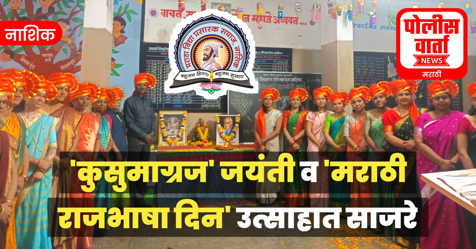 पोलीस वार्ता, नाशिक : मराठा विद्या प्रसारक समाज संस्थेच्या नाशिक येथील जनता विद्यालय, गोरेराम लेन येथे दि.27 फेब्रुवारी 2025, गुरुवारी रोजी ‘मराठी राजभाषा दिन’ तथा ‘विष्णू वामन शिरवाडकर’ उर्फ ‘कुसुमाग्रज’ यांची जयंती मोठ्या उत्साहात साजरी करण्यात आली. उपस्थित मान्यवरांच्या हस्ते प्रतिमापूजन व दिपप्रज्वलन करण्यात आले.