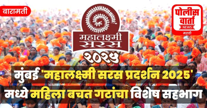 पोलीस वार्ता, बारामती : मुंबईतील बीकेसी मैदान येथे आयोजित ‘महालक्ष्मी सरस प्रदर्शन 2025’ या कार्यक्रमाचा शुभारंभ राज्याचे मुख्यमंत्री मा. देवेंद्र फडणवीस साहेब यांच्या हस्ते दि. 11 फेब्रुवारी रोजी झाला होता.
