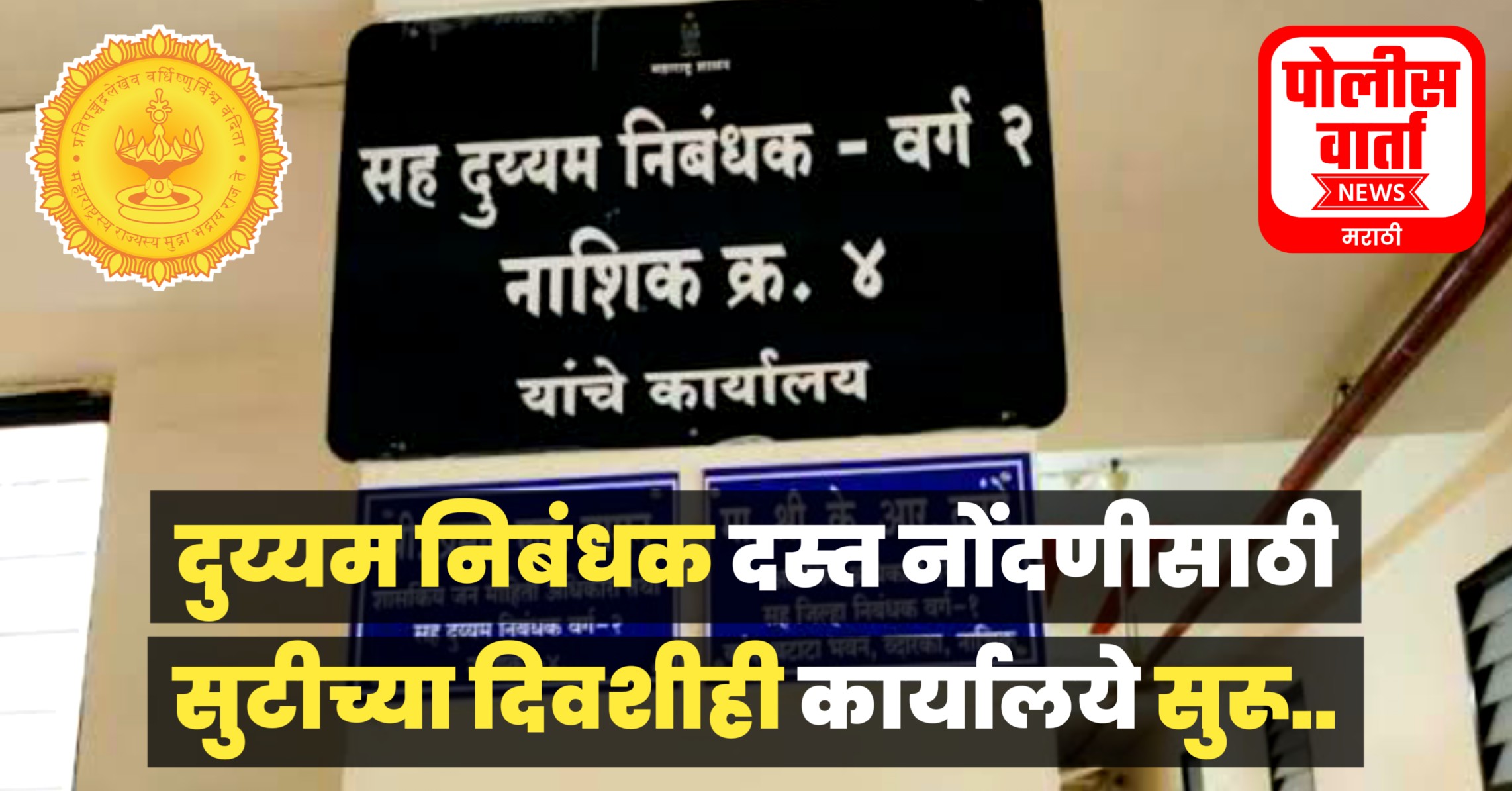 आर्थिक वर्ष 2024-25 या वर्षाचा इष्टांक पूर्ण करण्याच्या दृष्टीने मुद्रांक जिल्हाधिकारी व सर्व दुय्यम निबंधक कार्यालये शासकीय सुटीच्या दिवशी देखील सुरु राहणार..