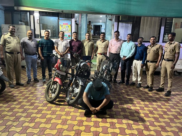 याप्रकरणी बाजारपेठ पोलीस स्टेशनचे निरीक्षक राहुल वाघ यांना गुप्त बातमीदारामार्फत माहिती मिळाली की,बुलेट चोरीच्या गुन्ह्यातील संशयित अशरफ खान अहमद खान (वय.२२) हा मध्यप्रदेशातील खाजा नगर,आझाद नगर बऱ्हाणपूर येथील असून यास गुन्हे शोध पथकातील सहाय्यक पोलीस निरीक्षक नितीन पाटील,पो.उप.निरी. मंगेश जाधव, विजय नेरकर,कांतीलाल केदारे, किरण धनगर,रवींद्र भावसार, सुनील सोनवणे, सचिन चौधरी, हर्षल महाजन,जीवन कापडे, महेंद्र पाटील,जावेद शहा,भूषण चौधरी,अमर अढाळे, प्रशांत सोनार योगेश माळी, योगेश महाजन अशांना दालनात बोलावून ताब्यात घेवून चौकशीचे आदेश दिले.सदरील संशयिताची चौकशी केली असता त्याने त्याचा साथीदार विधिसंघर्ष बालक याचे सोबत गुन्हा केल्याची कबूल दिली. संशयित आरोपी अशरफ खान अहमद खान यांच्या कडून दोन लाख २५ हजार रुपये किंमतीचे तीन मोटरसायकल हस्तगत केल्या असून बाजारपेठ पोलीस स्टेशनला दाखल असलेले दोन गुन्हे उघडकीस आले आहे.सुनील पांडुरंग इंगळे यांनी दिलेल्या फिर्यादीवरून पोलीस स्टेशनला गुन्हा दाखल करण्यात आला आहे.