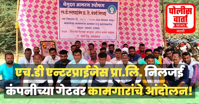 पोलीस वार्ता, यवतमाळ : वणी, वेकोली येथील एचडी एन्टरप्राईजेस व गौरव जॉईन्ट वेन्चर या प्रायव्हेट लिमिटेड कंपनीने 65 कामगारांना एकदम कामावरून काढून टाकल्यानंतर कंपनीविरोधात कामगारांनी दि.27 जानेवारी, सोमवारपासून आमरण उपोषणाला सुरुवात केली आहे. कंपनीच्या गेटसमोर कामगारांनी ठिय्या मांडला असून आज मंगळवारी उपोषणाचा दुसरा दिवस होता. मात्र संध्याकाळ पर्यंत कंपनी व्यवस्थापकांकडून उपोषणकर्त्यांशी व्यवस्थित पूर्ण बोलणी झालेली नाही. वेकोलिचे कामगार नेते टीएससी मेंबर संजय खाडे यांनी देखील उपोषणकर्त्यांना भेट देत पाठिंबा जाहीर केला आहे. कामगारांना न्याय मिळावा यासाठी वरिष्ट पातळीवर चर्चा करून जो पर्यंत कामागारांना न्याय मिळत नाही तोपर्यंत कामगारांसोबत राहण्याचे आश्वासन त्यांनी दिले.