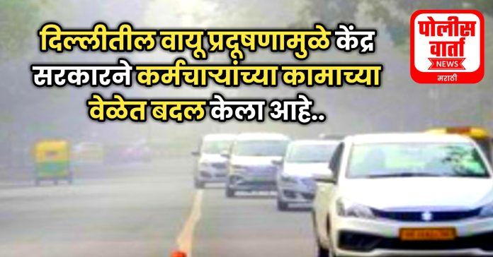 पोलीस वार्ता, नवी दिल्ली: दिल्लीतील वायू प्रदूषणामुळे केंद्र सरकारने आपल्या कर्मचाऱ्यांच्या कामाच्या वेळेत बदल केला आहे. दिल्ली सरकारने आपल्या कर्मचाऱ्यांच्या कामाच्या वेळा आधीच बदलल्या आहेत.
