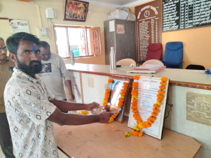 बुरहानपुर जिले के ग्राम चापोरा के ग्राम पंचायत कार्यालय में आज 26 नवंबर बुधवार को संविधान दिवस के अवसर पर डॉक्टर बाबासाहेब भीमराव जी अंबेडकर के फोटो पर तिलक लगाकर माल्यार्पण किया गया ।