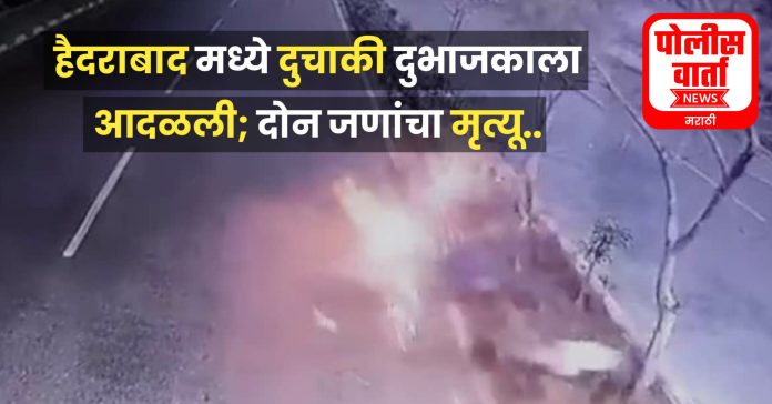पोलीस वार्ता, हैदराबाद : हैदराबादच्या माधापूर जिल्ह्यात दुचाकी दुभाजकावर आदळून रस्त्यावर फेकल्याने दुचाकीस्वार आणि दुचाकीवरील दोन जणांचा मृत्यू झाला. दि.28 डिसेंबर, शुक्रवारी रात्री दारूच्या नशेत दुचाकीस्वार अय्यप्पा सोसायटीजवळ 100 फूट रस्त्यावर भरधाव वेगाने जात असताना ही घटना घडली. ही धक्कादायक घटना परिसरातील सीसीटीव्हीत कैद झाली आहे.