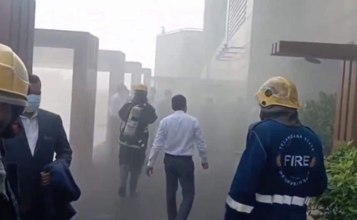 हैदराबादमधील लक्झरी हॉटेलमध्ये आज सकाळी आग लागली जिथे इंडियन प्रीमियर लीग (आयपीएल) होम टीमचे खेळाडू राहत आहेत. पॉश बंजारा हिल्स लोकलमधील पार्क हयॅटच्या पहिल्या मजल्यावर आग लागली आणि कॉरिडॉरमध्ये जाड धूर पाठविला.