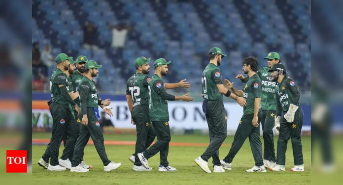 पाकिस्तानी खेळाडू उत्सव साजरा करतात (एपी फोटो/अल्ताफ काद्री)