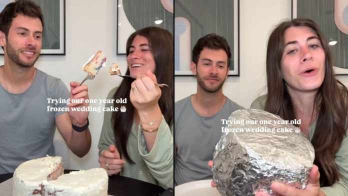 लग्नाचा केक जतन करण्याच्या परंपरेबद्दल आपल्याला माहिती आहे काय? आख्यायिकेनुसार, पहिल्या वर्धापनदिनानिमित्त त्यांच्या जतन केलेल्या लग्नाचा केक खात असलेल्या जोडप्यांना आनंदी लग्नाचा आशीर्वाद मिळाला. अलीकडेच, एक इन्स्टाग्राम व्हिडिओ व्हायरल झाला ज्यामध्ये एका जोडप्याने हा “फ्रोजन” केक खाण्याचा अनुभव सामायिक केला. बायकोने स्पष्ट केले की तिने केक जतन करण्यासाठी सर्व काही चांगले गुंडाळले आणि त्यांच्या लग्नाच्या पूर्ण वर्षानंतर ते खाण्यासाठी बरेचसे केले गेले. नवरा मात्र संशयीकडे पाहत होता आणि केक खाण्यापूर्वी तो सुंघत होता. संपूर्ण तयारीबद्दल त्याच्या जागरूकता नसल्यामुळे दर्शकांच्या ऑनलाइन टिप्पण्यांच्या श्रेणी निर्माण झाली.