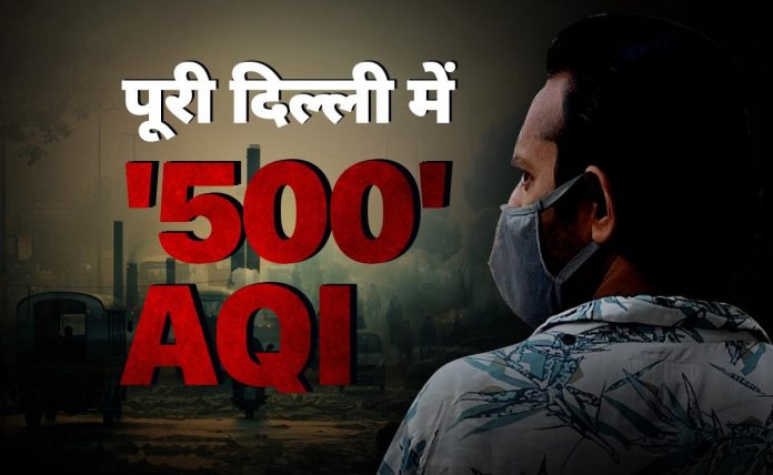 दिल्लीतील प्रदूषणाची पातळी अत्यंत गंभीर झाली आहे. दिल्ली-एनसीआरमधील हवेची गुणवत्ता म्हणजेच AQI धोकादायक बनला आहे. रविवारपासून जोरदार थंड वारे वाहत असूनही, AQI 500 वर पोहोचला आहे. सोमवारी संध्याकाळपर्यंत जवळपास संपूर्ण दिल्ली गॅस चेंबरमध्ये बदलली आहे. बहुतेक भागांचा AQI 500 किंवा 500 च्या जवळ पोहोचला आहे. मुंडका भागात सर्वाधिक AQI नोंदवला गेला. कमिशन फॉर एअर क्वालिटी मॅनेजमेंट (CAQM) ने 18 नोव्हेंबरपासून दिल्ली-NCR मध्ये सुधारित ग्रेडेड रिस्पॉन्स ॲक्शन प्लॅन (GRAP) चा चौथा टप्पा लागू केला आहे. प्रदूषण धोक्याच्या पातळीवर पोहोचल्याबद्दल सर्वोच्च न्यायालयाने दिल्ली आणि एनसीआरच्या केंद्र आणि राज्य सरकारांना फटकारले आहे.
