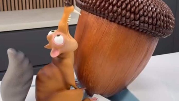 व्हिडिओची सुरूवात अॅमॅरी ग्विचॉनने चॉकलेटचे जाड थर जोडून, एकामागून एक, गिलहरीची एक विशाल-आकाराची रचना तयार केली. सावध सुस्पष्टता आणि कोरीव काम साधनांच्या उत्कृष्ट वापरासह, शेफ त्याच्या खाद्यतेल कामाचा भाग उत्तम काळजी आणि कौशल्य देऊन तयार करतो. चॉकलेट बॉलचे मोठे ऑर्ब्स गुगली डोळे तयार करण्यासाठी वापरले जातात. एकदा सर्व चॉकलेट थर जोडल्यानंतर, शेफ प्राण्याकडे अन्न रंगाच्या संशोधनात फवारणी करते. परिणाम निःसंशयपणे आपले मन उडवून देईल. मथळा वाचला, “चॉकलेट आईस एज!