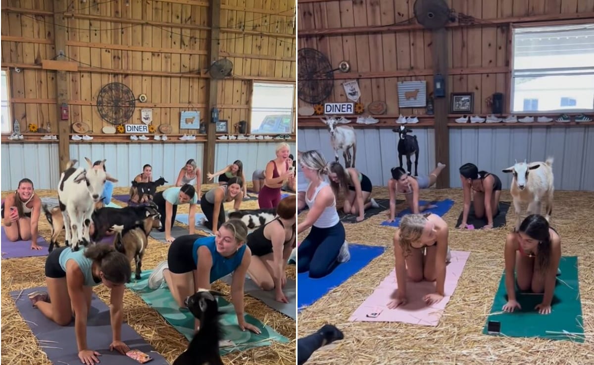 सोशल मीडियावर व्हायरल झालेला गोट योगा करणाऱ्या मुलींचा व्हिडिओ लोकांना खूप हसवत आहे आणि त्याचवेळी लोक त्याचा खूप आनंद घेत आहेत. व्हिडिओमध्ये तुम्ही पाहाल की पिवळ्या गवताने भरलेल्या हॉलमध्ये मुली योगासन स्थितीत बसल्या आहेत. सर्व मुली त्यांच्या हातावर आणि गुडघ्यावर असतात आणि नंतर अनेक शेळ्या (शेळ्या आणि बकऱ्या) या हॉलमध्ये येतात आणि एक एक करून या मुलींच्या पाठीवर चढतात आणि तिथे उभ्या राहतात. यावेळी योगा करणाऱ्या या मुलीही खूप हसत असतात. काही लोकांना त्यांचा तोल सांभाळता येत नाही तर काहींना ते खूप मजेदार वाटते. बकरी योगाचा हा व्हिडिओ सध्या सोशल मीडियावर खूप पसंत केला जात आहे. गोट योगाच्या या व्हिडिओवर लोक आपल्या कमेंट देखील करत आहेत.