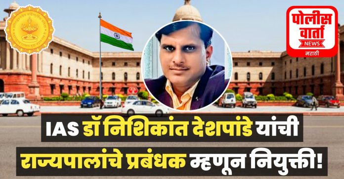 पोलीस वार्ता, मुंबई : सध्या महाराष्ट्रात बऱ्याच अधिकाऱ्यांच्या बदल्या होताना दिसून येत आहे त्यातच येणाऱ्या निवडणुका याचे कारण आहे अशी चर्चा होत असताना आता दिवाळी सणाच्या शुभमुहूर्तावर राजभवनातून एक बातमी समोर आली आहे. अप्पर जिल्हाधिकारीपदी नुकतीच पदोन्नती मिळालेले IAS अधिकारी डॉ.निशिकांत देशपांडे यांची आता महाराष्ट्र राज्य राज्यपालांचे प्रबंधक म्हणून नियुक्ती करण्यात आली आहे. डॉ.निशिकांत देशपांडे यांनी राज्य शासनातील अनेक महत्त्वाच्या विभागांमध्ये यशस्वीरित्या आजपर्यंत काम पाहिले आहे.
