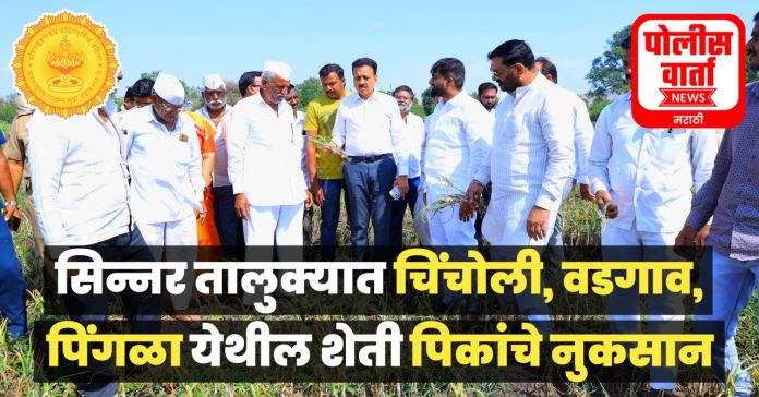 पोलीस वार्ता, सिन्नर : जिल्ह्यात ऐन उन्हाळ्यात दोन दिवसांपूर्वी झालेल्या अवकाळी पाऊस व गारपीटीमुळे जिह्यातील शेतकऱ्यांचे मोठ्या प्रमाणात नुकसान झाले असून, या नुकसानीचे राज्याचे आपत्ती व्यवस्थापन व जलसंपदा मंत्री गिरीष महाजन यांनी दि.4 एप्रिल रोजी सिन्नर तालुका दौरा करून नुकसान ग्रस्त परिसराची पाहणी केली.