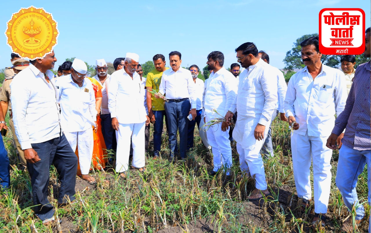 यावेळी चिंचोली, वडगाव, पिंगळा या गावांमध्ये शेतकऱ्यांच्या बांधावर जाऊन नुकसानीची पाहणी करून माहिती घेतली तसेच चिंचोली येथे शेतकरी रमेश नागरे यांच्या कांदा पिकाची तसेच आनंदीबाई काशिनाथ कांगणे यांच्या बीट व कांदा पिकाची पाहणी केली. तर वडगाव पिंगळा येथे विठ्ठल सांगळे आणि कचरू गंधास यांच्या नुकसानग्रस्त शेती पीकांची मंत्री महाजन यांनी पाहणी केली.
