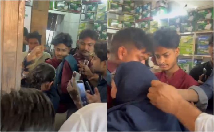 उत्तर प्रदेशातील मुझफ्फरनगरचा व्हिडिओ सोशल मीडियावर खूप वेगवान व्हायरल होत आहे. या व्हिडिओमध्ये, एक तरुण स्त्री बुर्कामध्ये दिसली आणि त्याबरोबर एक तरुण माणूस आहे. त्यांच्या जवळ उभे असलेली गर्दी त्या तरूणी आणि तरूण दोघांशीही गैरवर्तन करीत आहे. गर्दीत उपस्थित लोक मुलीचे बुर्का जबरदस्तीने खेचत आहेत आणि त्याचे व्हिडिओ बनवत आहेत. मुलगी लोकांनी स्वत: ला सोडण्याची विनवणी करत असताना. परंतु जवळच उभे असलेले लोक अजूनही सहमत नाहीत आणि त्या युवतीबरोबर खेचत राहतात.