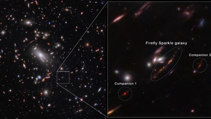 फायरफ्लाय स्पार्कल टोपणनाव असलेली आकाशगंगा नासाच्या जेम्स वेब स्पेस टेलिस्कोपने शोधून काढली आहे, ज्यामुळे एक महत्त्वपूर्ण शोध लागला आहे. 11 डिसेंबर रोजी नेचरमध्ये प्रकाशित झालेल्या संशोधनानुसार, ही आकाशगंगा बिग बँगनंतर अंदाजे 600 दशलक्ष वर्षांनी अस्तित्वात होती आणि विकासाच्या तुलनेने टप्प्यावर आकाशगंगेसारखे वस्तुमान आहे. शोध सुरुवातीच्या विश्वातील अद्वितीय अंतर्दृष्टी हायलाइट करते, कारण या कालखंडातील पूर्वी ओळखल्या गेलेल्या आकाशगंगा लक्षणीयरीत्या मोठ्या होत्या.