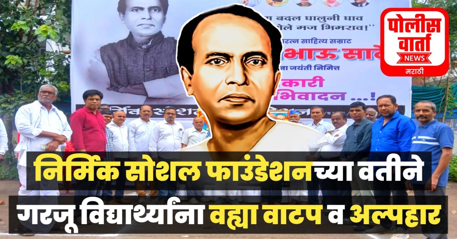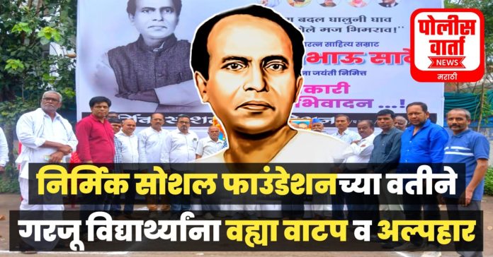 त्याच प्रमाणे निर्मिक सोशल फाउंडेशनच्या वतीने देखील गंधर्व नगरीत आण्णाभाऊ साठे यांची जयंती आनंद उत्साहात साजरी झाली. यावेळी परिसरातील जेष्ठ नागरिक व महिला यांनी एकत्र येत रॅली काढून आण्णाभाऊ साठे व महापुरुषांच्या नावाच्या घोषणा देऊन जयजयकार केला. तसेच सर्व महापुरुषांच्या प्रतिमांना पुष्पहार अर्पण केले. आणि सामाजिक संदेश देत 50 गरजु विद्यार्थांना शालेय वह्या वाटप करून त्यांना अल्पोपहार देण्यात आले.