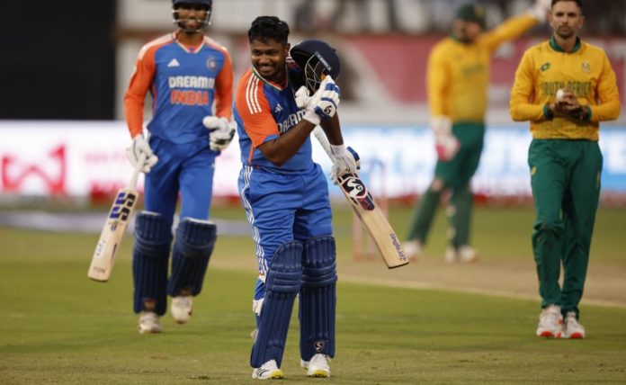 संजू सॅमसनच्या चित्तथरारक दुसऱ्या शतकाला वरुण चक्रवर्ती आणि रवी बिश्नोई या फिरकीपटूंनी सुंदरपणे पूरक केले कारण भारताने शुक्रवारी पहिल्या T20 आंतरराष्ट्रीय सामन्यात दक्षिण आफ्रिकेचा तब्बल 61 धावांनी पराभव करून चार सामन्यांच्या मालिकेत 1-0 अशी आघाडी घेतली. आपल्यातील प्रतिभेचे खाणक्षेत्र लक्षात न आल्याने अनेकदा चकित झालेला सॅमसन टी-२० आंतरराष्ट्रीय सामन्यांमध्ये पाठोपाठ शतके ठोकणारा पहिला भारतीय फलंदाज ठरला कारण त्याच्या ५० चेंडूत १०७ धावा त्याने १० राक्षसी षटकारांसह भारताच्या ८ बाद २०२ धावा केल्या. 20 षटकात. भारताने शेवटच्या पाच षटकात केवळ 35 धावा केल्या असूनही.