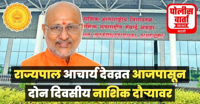 पोलीस वार्ता, नाशिक : राज्याचे राज्यपाल महोदय आचार्य देवव्रत हे गुरूवार 1 जानेवारी 2026 रोजी नाशिक दौऱ्यावर येणार आहे दुपारी 2 वाजता ओझर विमानतळ येथे त्यांचे आगमन होणार आहे. त्यानंतर ते तिथून पुढील नियोजित विविध कार्यक्रमास दुपारी 2.30 ते 4.30 वाजेपर्यंत सह्याद्री फार्म, मोहाडी, दिंडोरी येथे उपस्थित राहणार आहे.