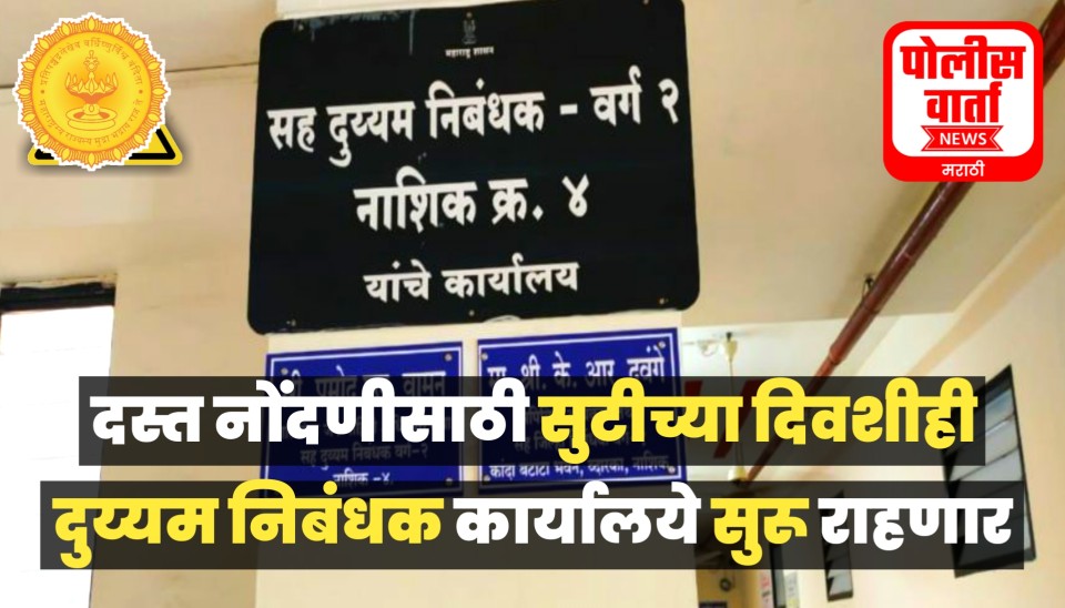 पोलीस वार्ता, नाशिक : 2025 आर्थिक वर्ष समाप्ती तसेच नूतन वर्षानिमित्त नागरिकांचा मालमत्ता खरेदी करण्याकडे जास्त कल असल्यामुळे दस्त नोंदणीचे प्रमाण वाढण्याची शक्यता आहे. याशिवाय वर्षा अखेरचा इष्टांक पूर्ण करण्याच्या दृष्टीने दि. 26, 28, 29 व 31 मार्च 2026 या चार सार्वजनिक सुटीच्या दिवशी नाशिक शहरातील सर्व दुय्यम निबंधक कार्यालये सुरु राहणार आहेत, असे नाशिकचे सह. जिल्हा निबंधक वर्ग-1 तथा मुद्रांक जिल्हाधिकारी संदीप आहेर यांनी प्रसिद्धी पत्रकार द्वारे जाहीर केले आहे.