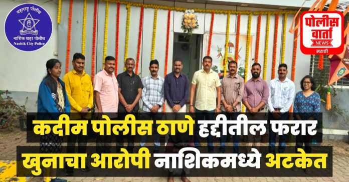 याबाबत सविस्तर वृत्त असे की, नाशिक पोलीसांना माहिती मिळाली कदीम पोलीस ठाणे येथील फरार खुनाचा आरोपी नाशिक शहर हद्दीत पळून गेला आहे. यानुसार नाशिक पोलीस वरिष्ठांकडून नाशिक शहर गुन्हेशाखा युनिट-1 च्या पोलीस पथकाला दि.25 ऑक्टोबर रोजी कारवाईचे आदेश देण्यात आले होते, त्या अनुषंगाने तपास करत असताना शहर गुन्हेशाखेचे पोह. प्रशांत मरकड माहिती मिळाली की, जालना जिल्ह्यातील फरार आरोपी विशाल गायकवाड हा नाशिकरोड, रेल्वेस्टेशन परिसरात आला आहे. या बातमीची खात्री करून सदरची माहीती शहर गुन्हेशाखा युनिट-1 चे वपोनि. डॉ.अंचल मुदगल यांना देवुन त्यांच्या मार्गदर्शनात पोउनि. सुदाम सांगळे, पोह. प्रशांत मरकड, प्रदिप म्हसदे, देविदास ठाकरे, विशाल काठे, सुकाम पवार, पोअं. जगेश्वर बोरसे, मपोअं. अनुजा येलवे यांचे पोलीस पथक तयार करून पुढील कारवाईसाठी पाठवण्यात आले. पोलीस पथकाने नाशिकरोड, रेल्वेस्टेशन तसेच बसस्थानक परिसरात शोध घेतला असता आरोपी विशाल गायकवाड मिळून आला. त्याला ताब्यात घेऊन त्याचे नाव विचारले असता त्याने नाव विशाल उर्फ वांग्या शिवाजी गायकवाड, (वय-24) रा. लहुजी चौक, नुतन वसाहत, जालना असे सांगितले. त्याला गुन्ह्याबाबत विचारना केली असता त्याने सदर गुन्हा त्याच्या साथीदारांसह केल्याची कबुली दिली. त्यामुळे आरोपीला पकडून पुढील कारवाईसाठी स्थानिक गुन्हेशाखा, जालना यांच्या ताब्यात देण्यात आले आहे.
