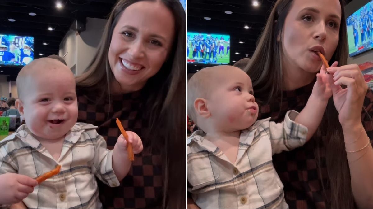 इंटरनेट मधुर खाद्य व्हिडिओ आणि मोहक लहान मुलांच्या व्हिडिओंनी भरलेले आहे. दोघांना एकत्र करा आणि आम्हाला इंटरनेटवर सर्वात गोंडस लहान खाद्यपदार्थ सापडले आहेत, 10 दशलक्षाहून अधिक दृश्यांसह व्हायरल होत आहेत. प्रभावशाली एमिली फॉवरने शेअर केलेल्या क्लिपमध्ये, सीईओ आणि बेबी नॅशची आई एका स्पोर्ट्स बार सारखी दिसणारी बसलेली, पार्श्वभूमीत टीव्हीवर थेट सामना खेळताना दिसत आहे. तिच्या मुलाला तिच्या मांडीवर बसवून, ती खायला बटाटा फ्राय घेते जी लगेच तिच्या बाळाने हिसकावून घेतली जी ते खाण्यास सुरुवात करते. ती नंतर दुसरा तुकडा खायला लागते पण बाळाला तेही हवे असते. आईला हसू आवरता येत नाही. तिने तिसरा तळणे पकडताच, मुलानेही ते घेण्यास व्यवस्थापित केले आणि टेबलावरील प्रत्येकजण हसत सोडला.