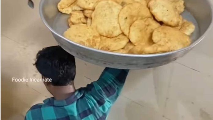 स्वयंपाकघरच्या दुसऱ्या भागात, एक कामगार एका मोठ्या डब्यात पीठ मिक्स करताना दिसतो. पीठ इतके मुबलक आहे की तो उघड्या हातांनी मळताना त्याच्या कोपरापर्यंत साठतो. पीठ नंतर लहान गोळे मध्ये विभागले जाते आणि ट्रे वर व्यवस्थित रांगेत ठेवले जाते. पुढील पायरीमध्ये हे पिठाचे गोळे बाहेर काढले जातात आणि पूर्णतेसाठी तळलेले दिसतात, मऊ, उशासारखे भटुरे तयार करतात जे बाहेरून सोनेरी तपकिरी असतात आणि आतील बाजूने फ्लफी असतात.